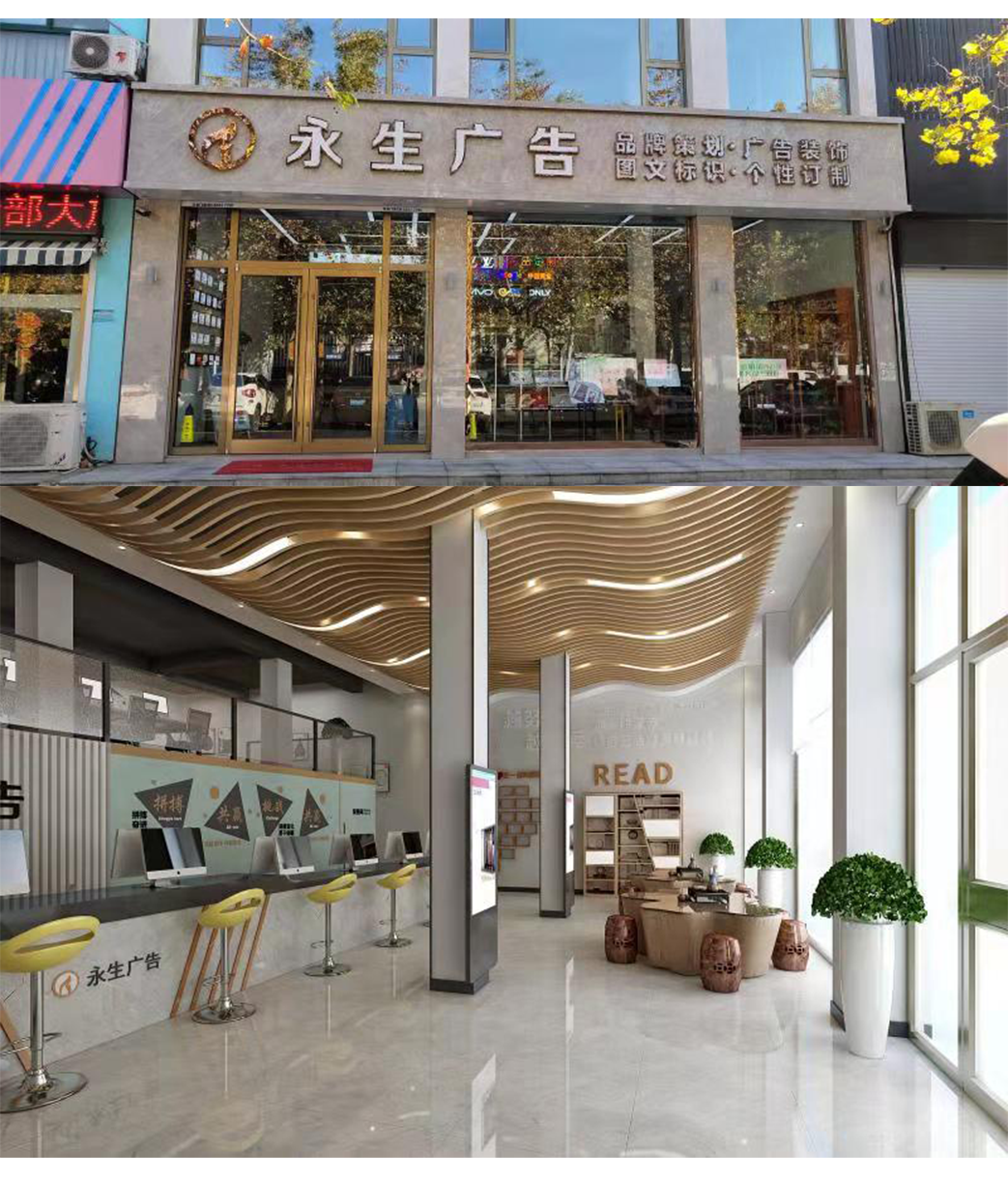 公司自有數(shù)碼沖床設(shè)備、500W光纖機、高精度大幅面噴繪機、寫真機、UV機、多種大小型雕刻機、吸塑機、全自動圍字機、自動開槽機、激光焊接機、拋光機等生產(chǎn)加工設(shè)備,擁有完善的設(shè)計團(tuán)隊、技術(shù)團(tuán)隊、施工團(tuán)隊、售后團(tuán)隊,可為廣大客戶提供室內(nèi)裝修、店招門頭、精神堡壘、黨建標(biāo)識、標(biāo)識標(biāo)牌、宣傳欄、LED顯示屏、警示標(biāo)識、精品字、證卡胸牌、證書獎杯、燈箱、桌牌、定制禮品、展具、噴印等多種專業(yè)廣告服務(wù)...